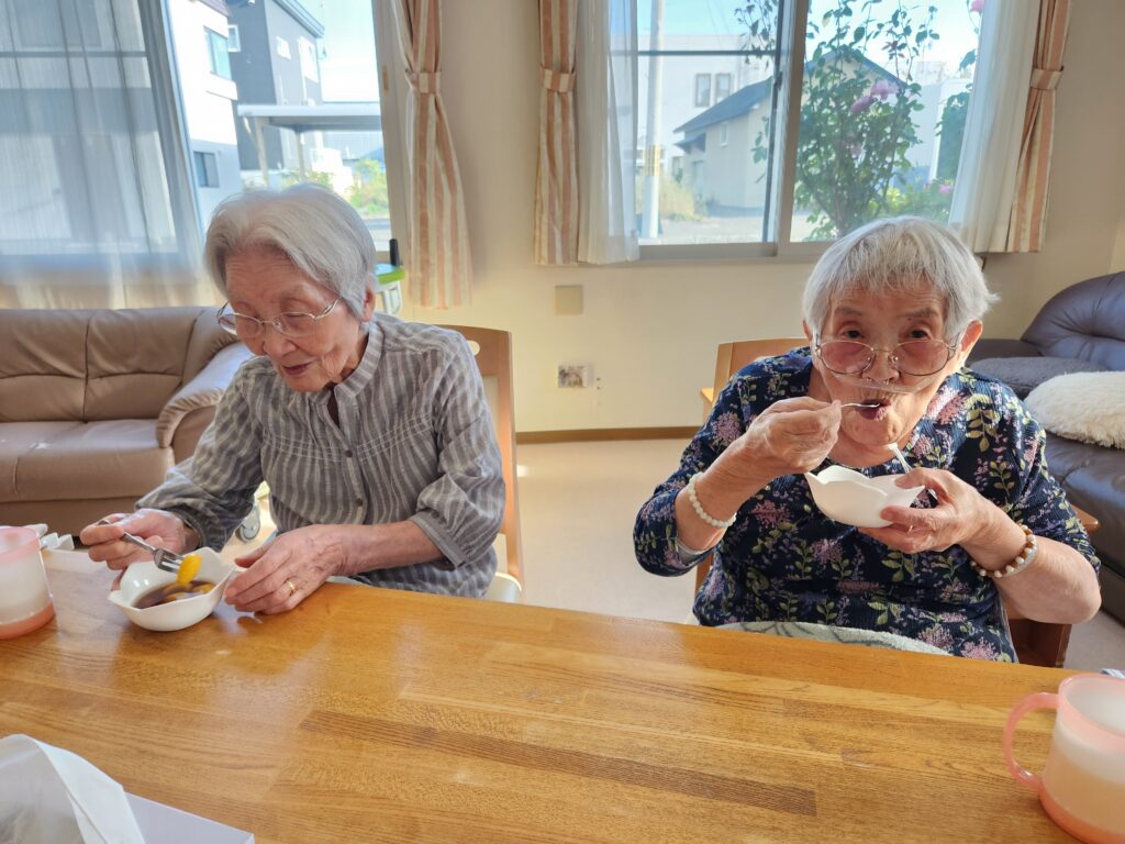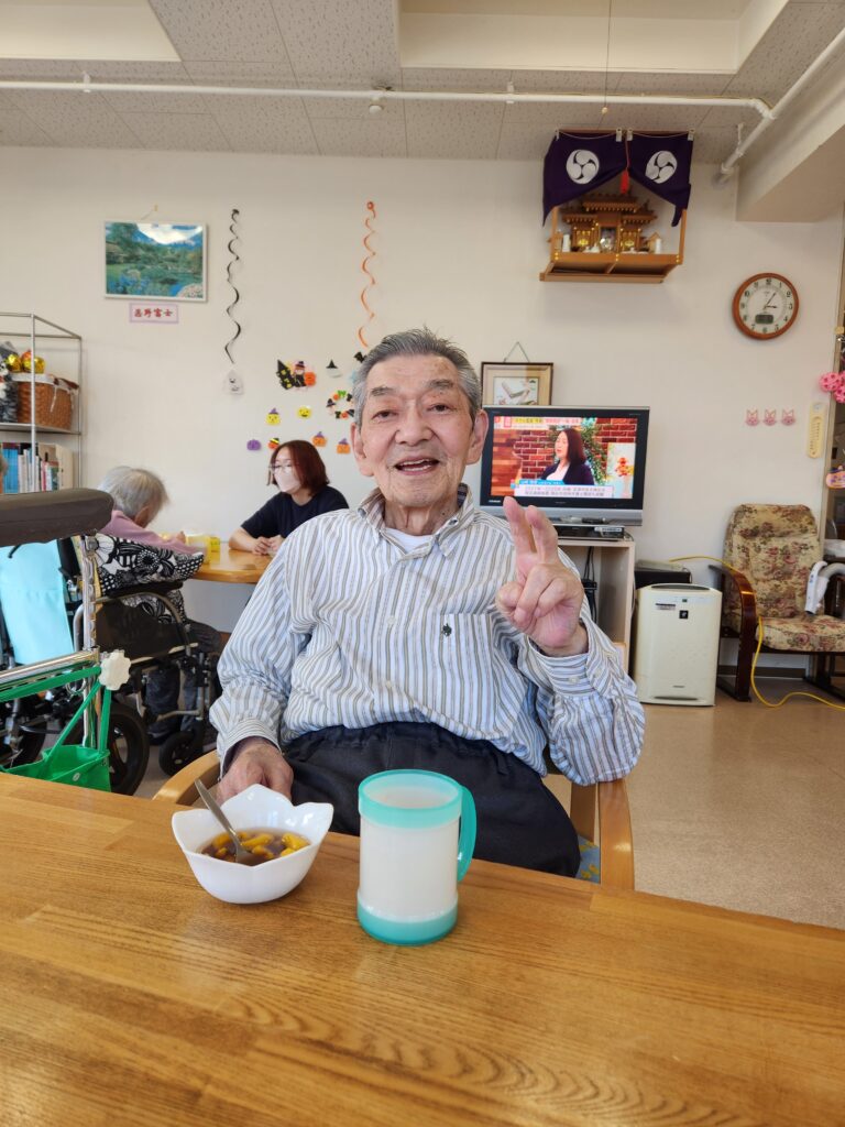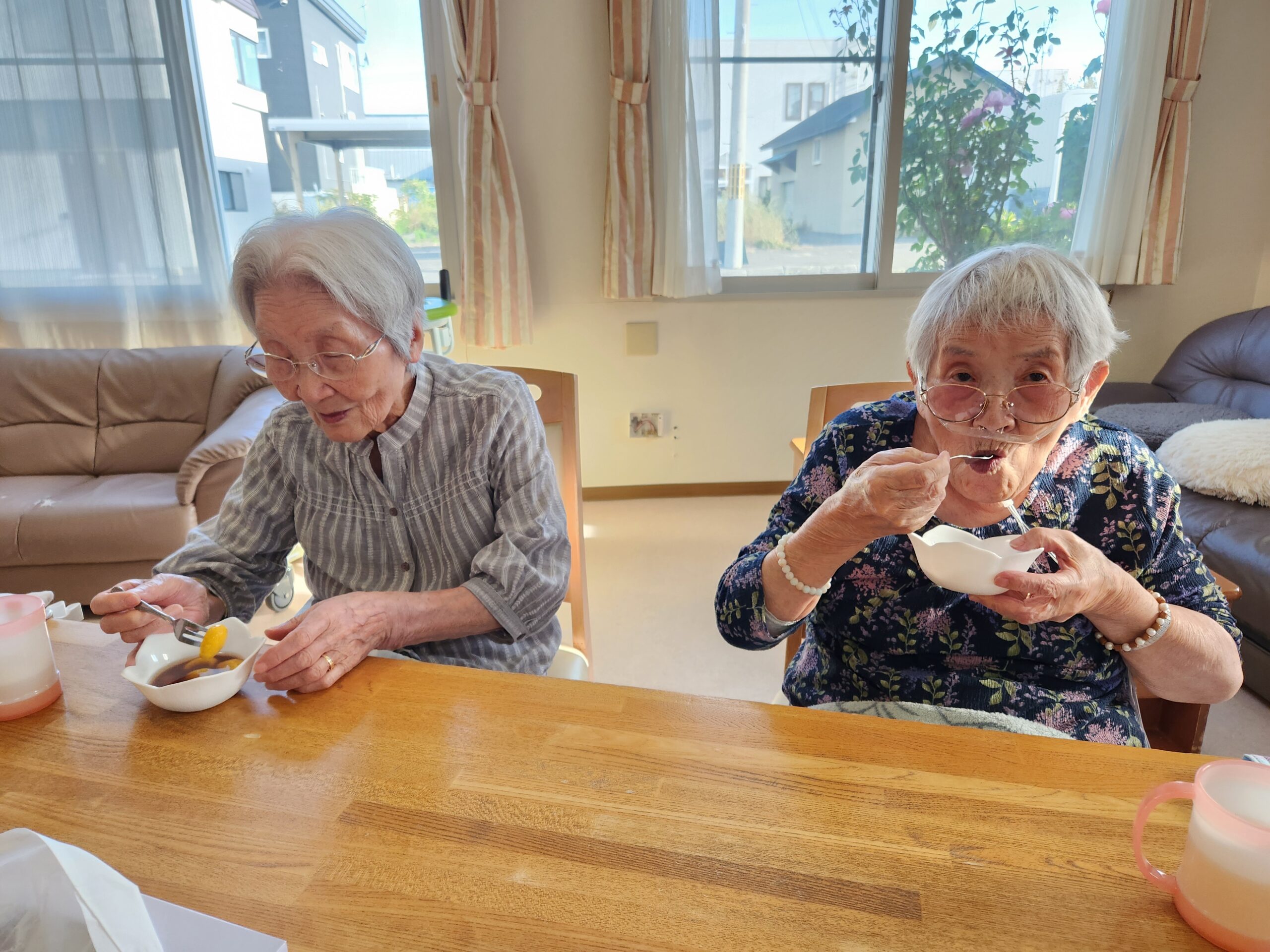 「お団子。柔らかくて美味しいね(^^」「甘くて美味しいね😋」と、皆さんあっと言う間に召し上がっていました。