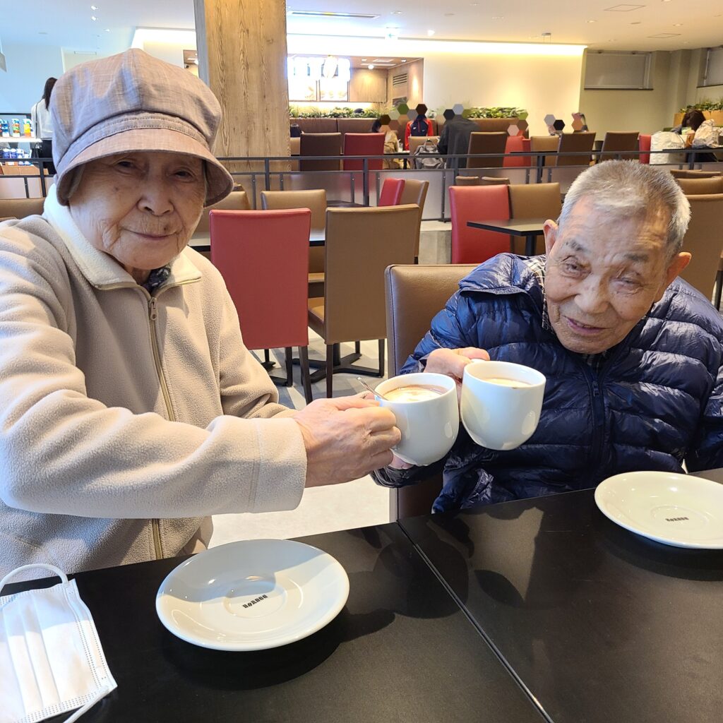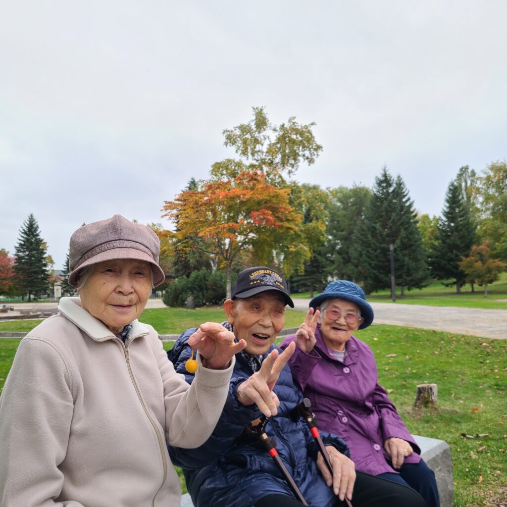 2025.10.19 紅葉見学🍁 10/18に、少しお天気はいまいちでしたが・・・銀杏並木が綺麗な音更まで 1階2階の入居者さんと出掛けてきました🚗 近くの公園で降りて記念撮影、銀杏並木は車通りも多いので、車内から見ただけでしたが みなさん「綺麗ねぇ~」と眺めていました😊 少し小雨が降ってきて、ちょうど15時のおやつ時になったので オープンした新しいドトールさんで、お茶の時間にしました☕ うららで飲むココアとは一味違って、みなさん「うめぇなぁ~」「美味しい」と喜ばれていましたよ😊☕ < 前の記事へ 記事一覧へ >