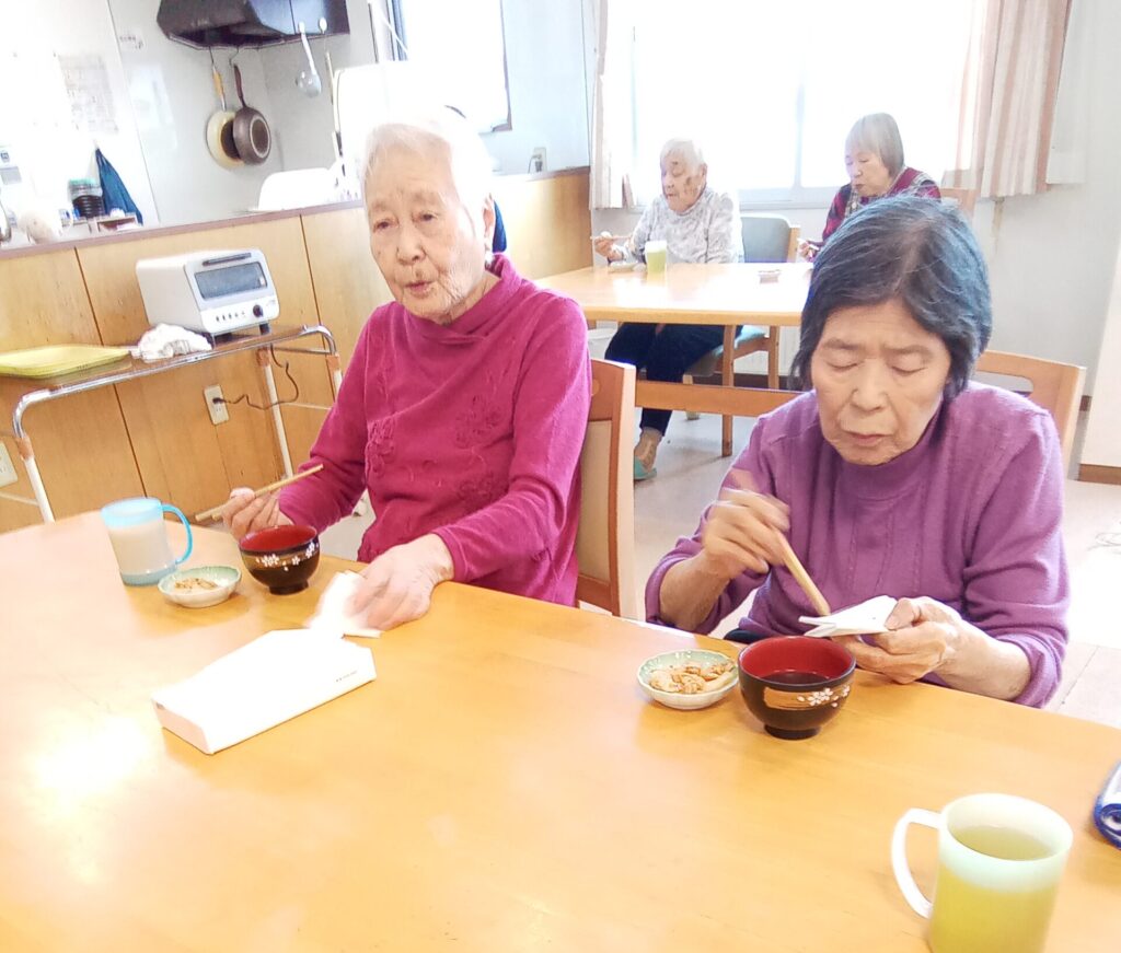 2026.1.12 【うらら2F】鏡開き 昨日は鏡開きでしたね。 みなさんの無病息災、うらら安全を願って鏡餅を降ろして お汁粉に焼いたお餅を入れて召し上がっていただきました。 お口直しに、うららで漬けた白菜のキムチ漬けも添えて😊 お汁粉も、キムチ漬けも「美味しいわ~」と喜ばれていました😋 < 前の記事へ 記事一覧へ > 次の記事へ >